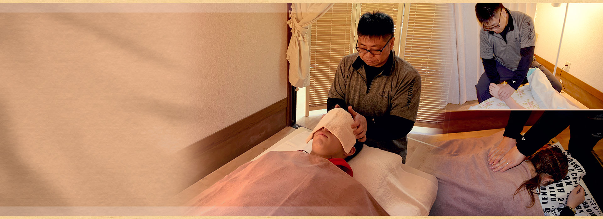 こちらでは施術の分かりやすい例や時間の目安などをご案内しております。全身を心ゆくまでほぐすこりとりのリラクゼーションは、初めてでも安心して受けて頂けます。